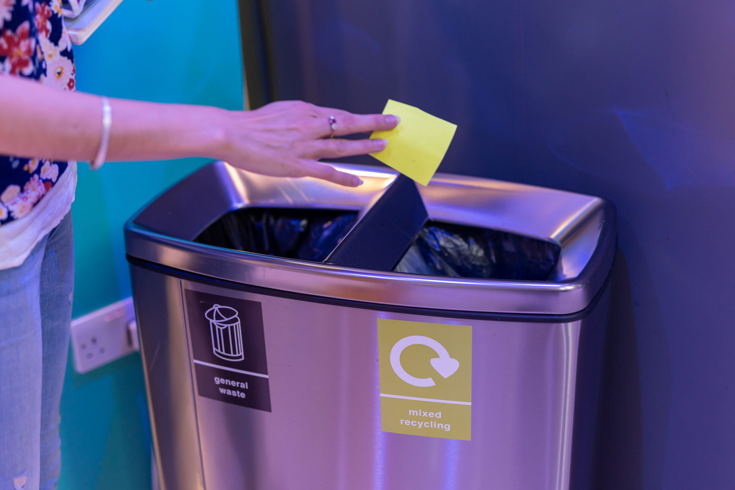 A girl putting something in recycle